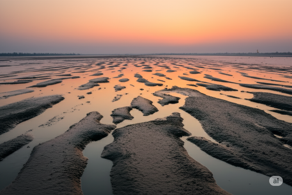• Revealed Textures: The ebbing tide unveils intricate patterns in the wet sand, sculpted by the retreating water and dotted with shells and tiny marine life.